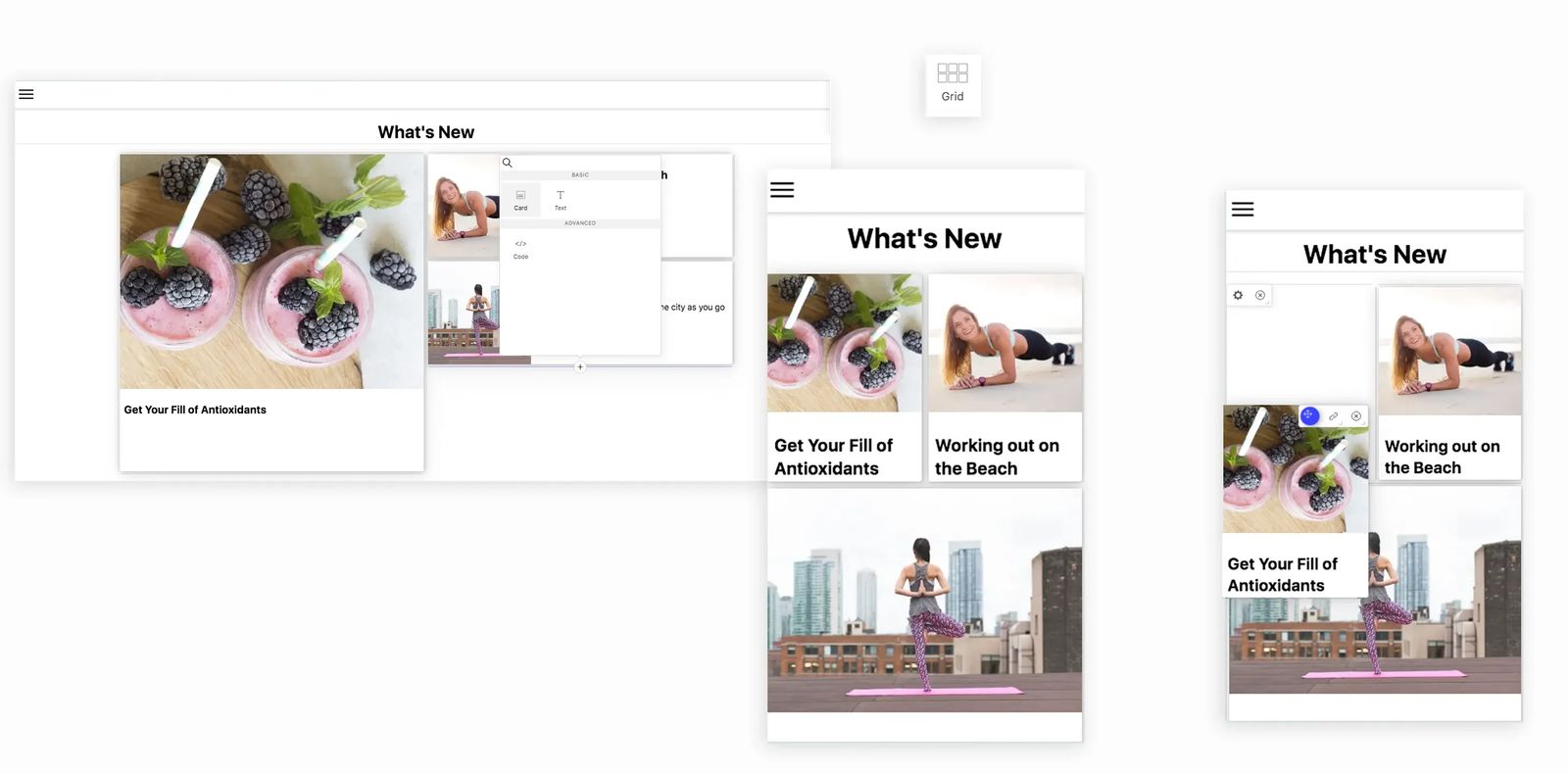 On your Cardsetter website, you can place and group content anywhere you like by placing "cards" within grids or decks.