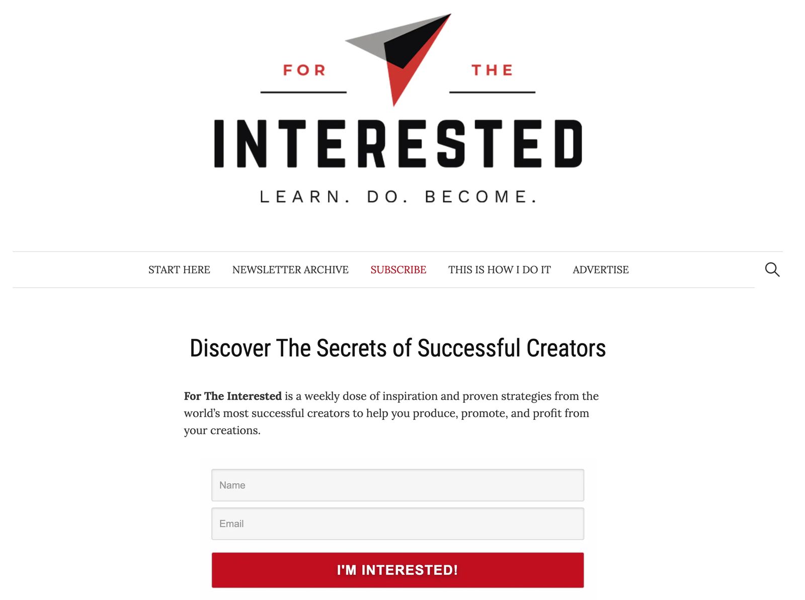 For the Interested is a newsletter by Josh Spector featuring "ideas to help you produce, promote, and profit from your creations." The newsletter is sent out weekly with a collection of original content from Josh and curated content from around the web. Josh intros all links with a synopsis of what you'll learn from each piece.