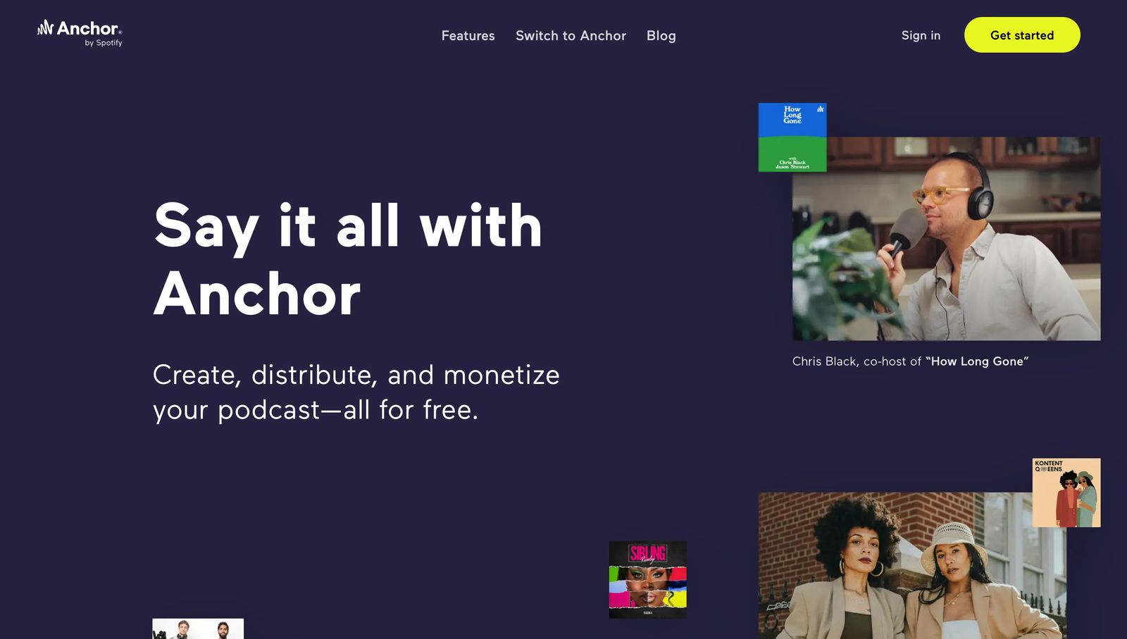 Anchor provides tools for recording, hosting, posting, and monetizing podcasts. Record directly from your phone, tablet, or computer, and publish to the most popular podcasting services.