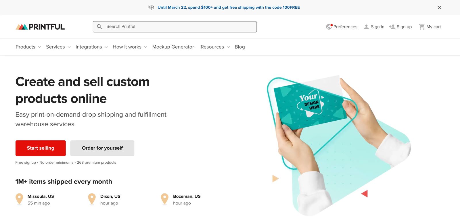 Printful offers print on demand services on a variety of products so you never have to purchase and store your own inventory. You can also utilize fulfillment services from Printful to store and fulfill any physical inventory that you carry in your online store.