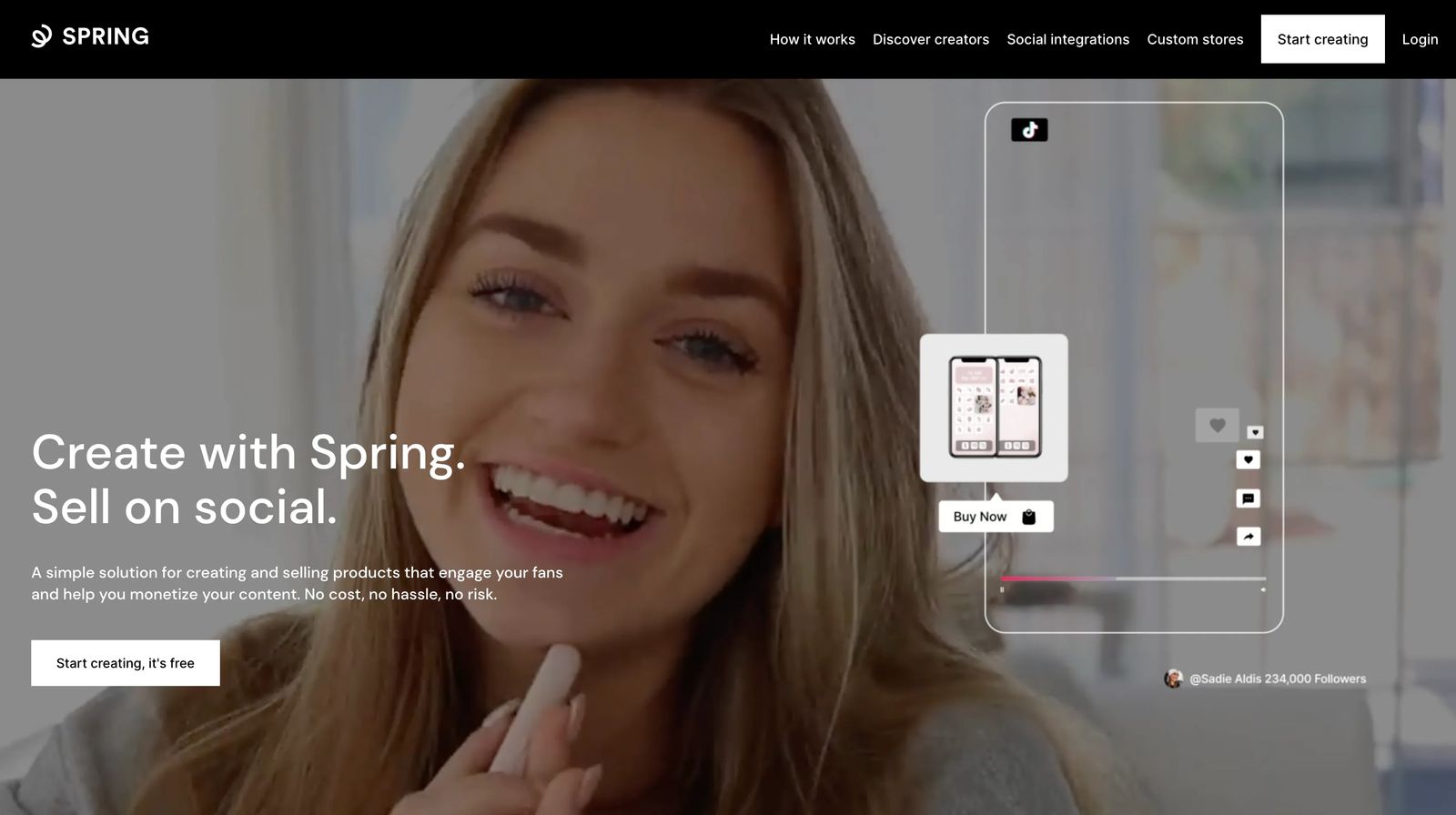Creators can upload their designs and start selling merch to fans in no time. Spring offers direct to garment printing, provides an online store for members, and enables the sale of digital goods too.