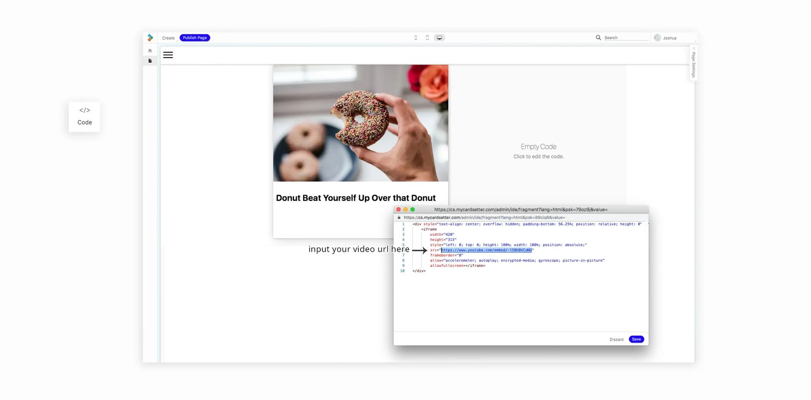 You can resize the code block within your grid or deck to accommodate your layout. Want to add some text to give context to your video? Just add a text block above, below or next to your video and start typing.