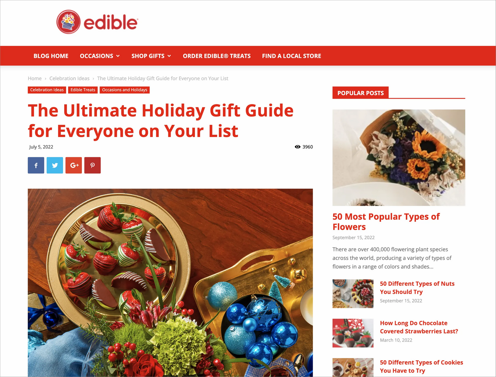 Edible Arrangements highlights several of its products in a Holiday Gift Guide Blog post.