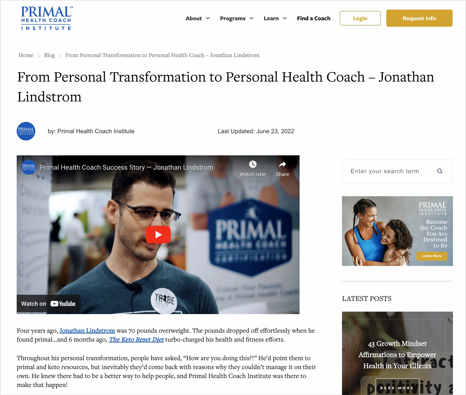 The Primal Health Coach Institute details the success one of their clients achieved through The Keto Reset Diet.