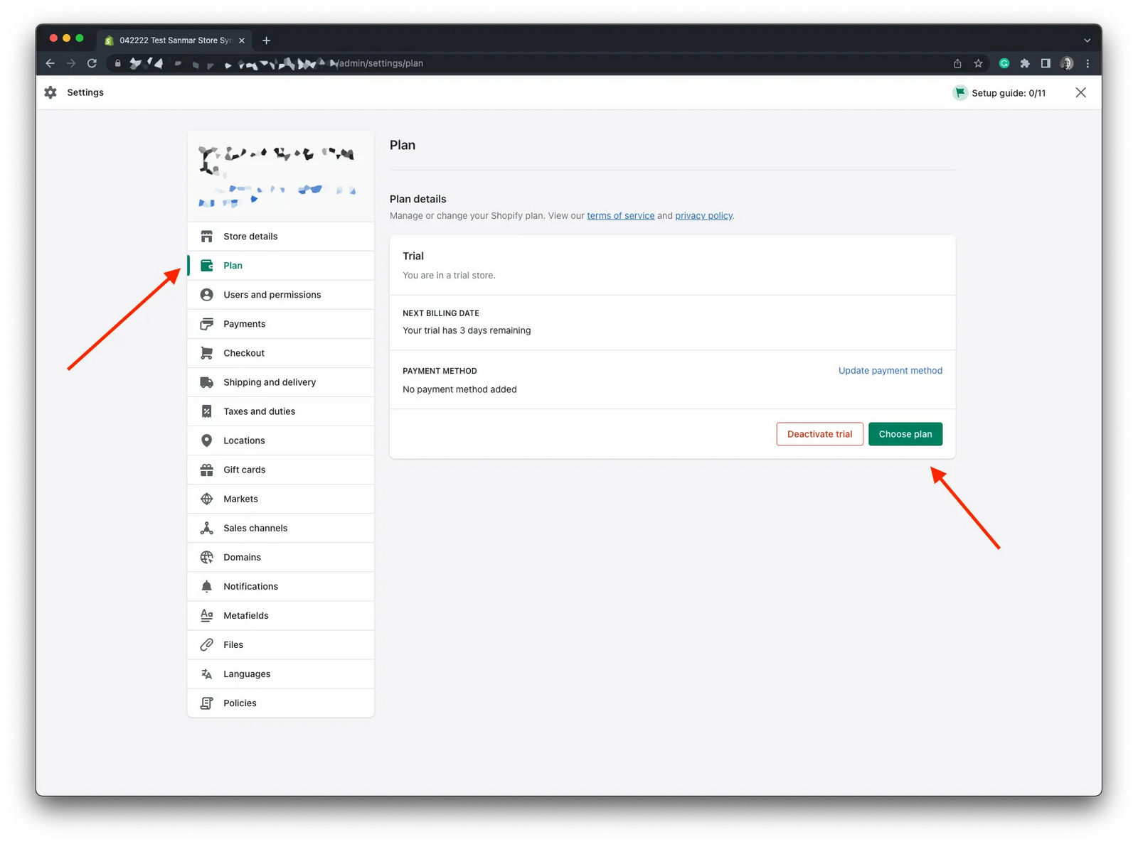 Step 7: Refresh the page, then navigate back to "Choose a Plan."