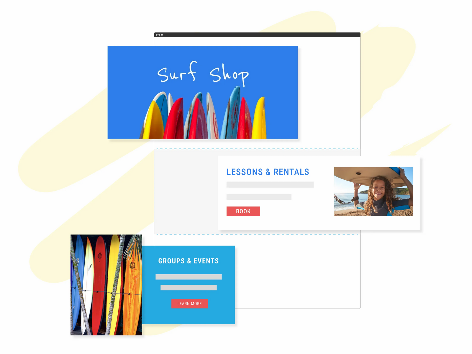 You'll start and create your website by answering a few simple questions. Based on your answers during onboarding, Cardsetter creates an initial design and layout for you. You'll have a foundation to work from, saving time and effort.